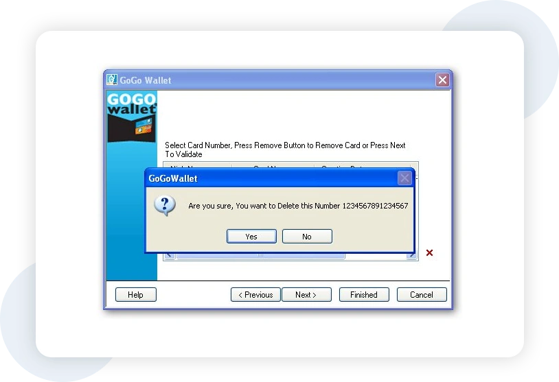 message asking if they are sure they want to delete the card number. If the user chooses No,