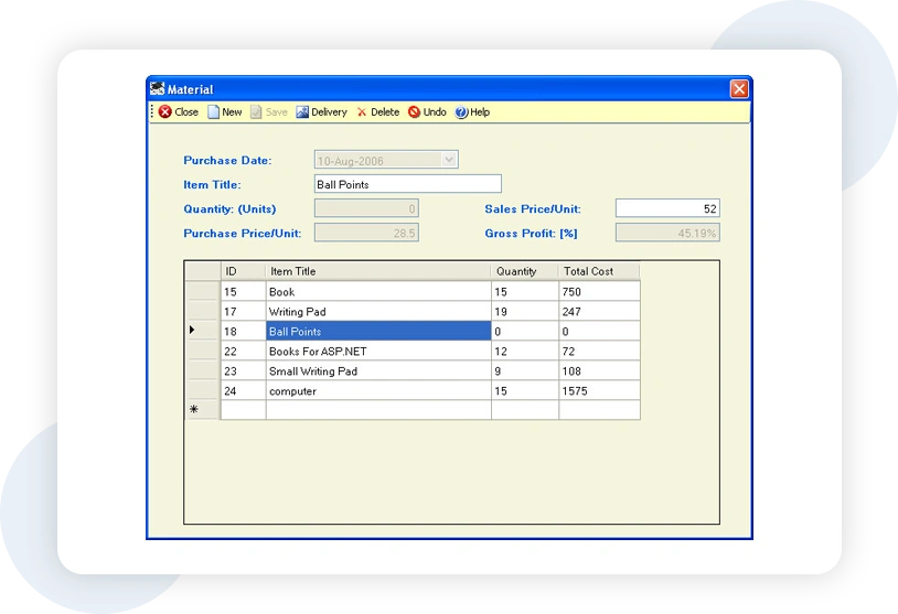 Use this screen to manage materials. You can view, create, edit, or delete materials as required.