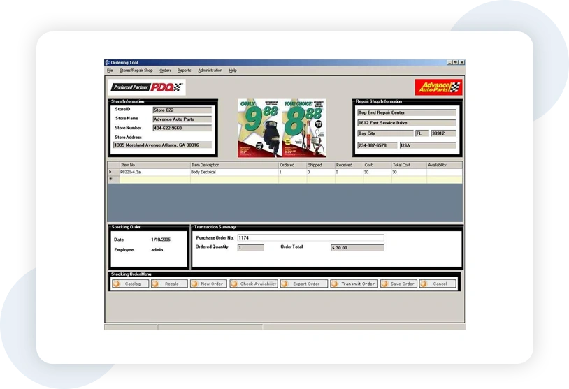 This is the main screen of the Ordering Tool. To select parts from the catalog, click the Catalog button.